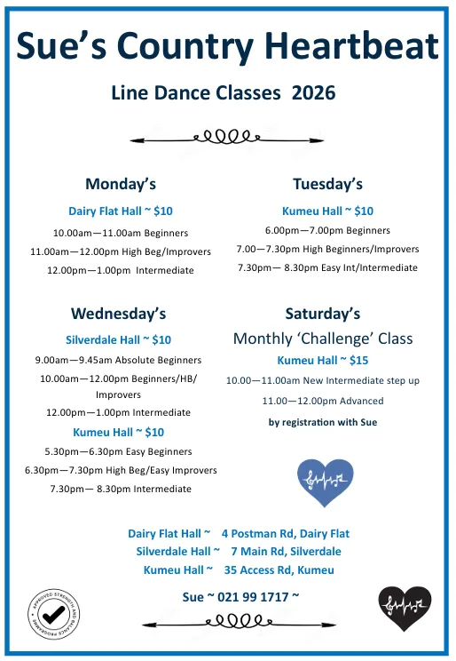 At Country Heartbeat Dance Co, we're not just about teaching line dancing—we're about creating a warm and welcoming community where everyone feels like family. Led by Sue Wellesley-Davies, our friendly instructor with over 10 years of experience, we offer more than just dance classes—we offer an unforgettable experience filled with laughter, friendship, and joy. With Sue's personal touch and expertise, you'll feel right at home as you embark on your dance journey with us. Join our dance family today and discover the magic of Country Heartbeat Dance Co!